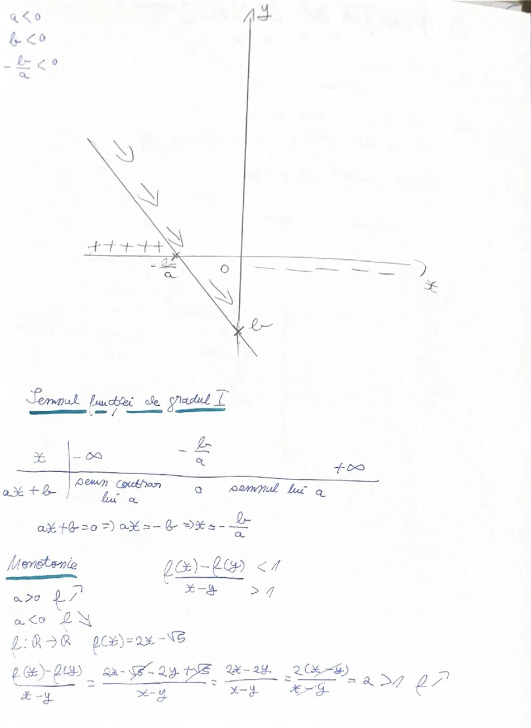Semnul functiei de gradul 1 + monotonie (subiect 1,exercitiul 3)